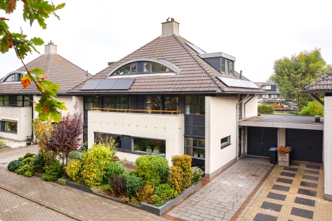 -De woning is aan de achterzijde (over de gehele breedte) voorzien van een elektrisch zonnescherm;